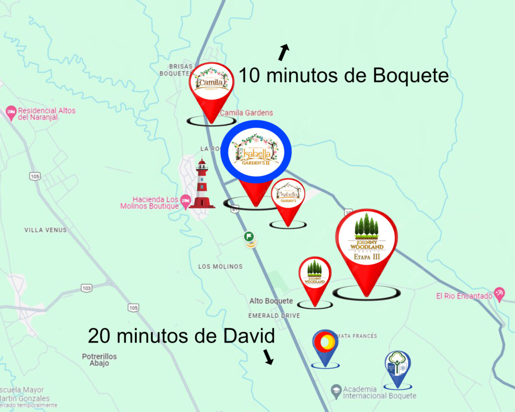 Cuenta con tres modelos de casas a elegir, calles de concreto, áreas verdes y parques para compartir con su familia, cerca de todo en el área de Alto Boquete y solo 20 minutos de David.